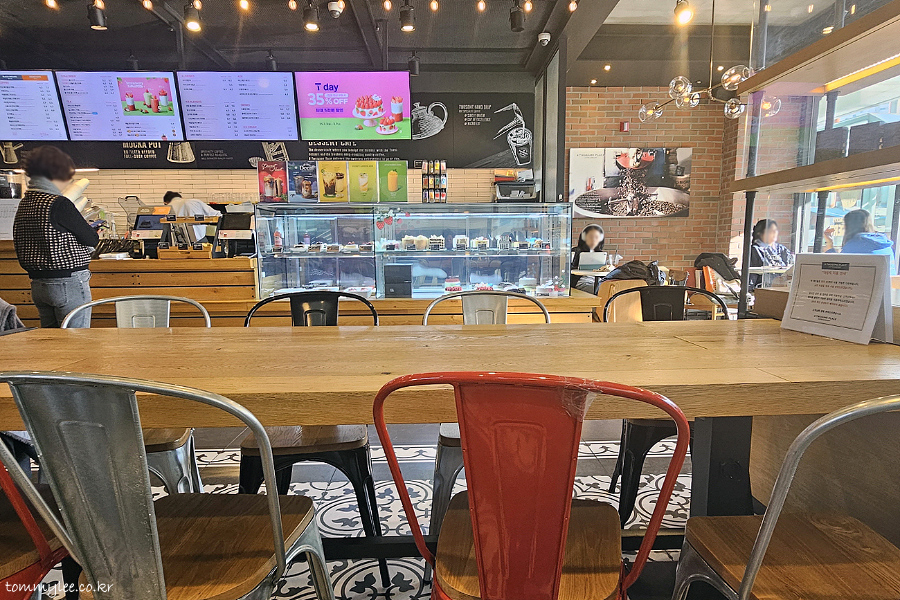 투썸플레이스 공덕해링턴스퀘어점은 뭐 이런 느낌입니다.. 점심시간이라서 손님이 빼곡하게 차있었어요..
