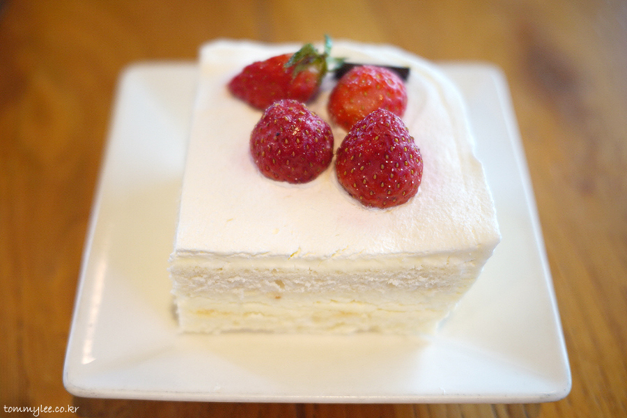 투썸플레이스 최고의 인기메뉴 스초생의 화이트초콜릿 버전으로 보시면 될 듯하고요.. 딸기 4개가 올라가는데 딸기 상태가 정말 안 좋았어요.. 케이크 장식용으로 올리는 딸기는 퀄리티가 좀 있는 애들로 써줘야 하는데 여긴 물러터진 막딸기 그냥 올림.. ㅋㅋㅋ..