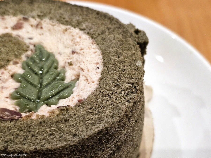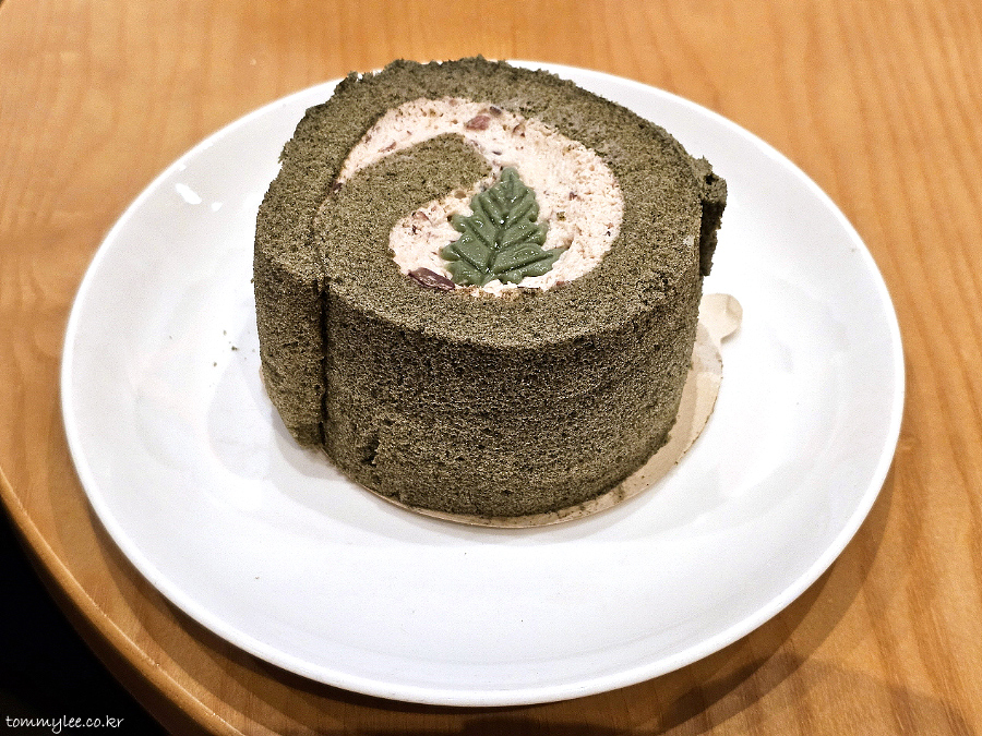 쑥모양 초콜릿은 귀엽네요.. 도톰한 쑥 롤생지에 단팥 생크림이 들어가 있습니다.. 옛날에 나왔던 우리 쑥크림 프라푸치노 위드 콜드브루의 롤케이크 버전인가 싶어요.. 상당히 닮아있는 느낌..