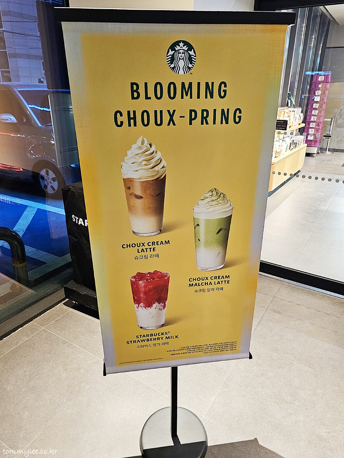BLOOMING CHOUX-PRING.. 블루밍 슈프링.. 스타벅스의 봄은 슈크림.. 슈크림라떼. 슈크림말차라떼, 딸기라떼 프로모션 중입니다.. 딸기라떼는 의외로 장수하네요.. 엄청 오래 버티는 중.. ㅋㅋㅋ..