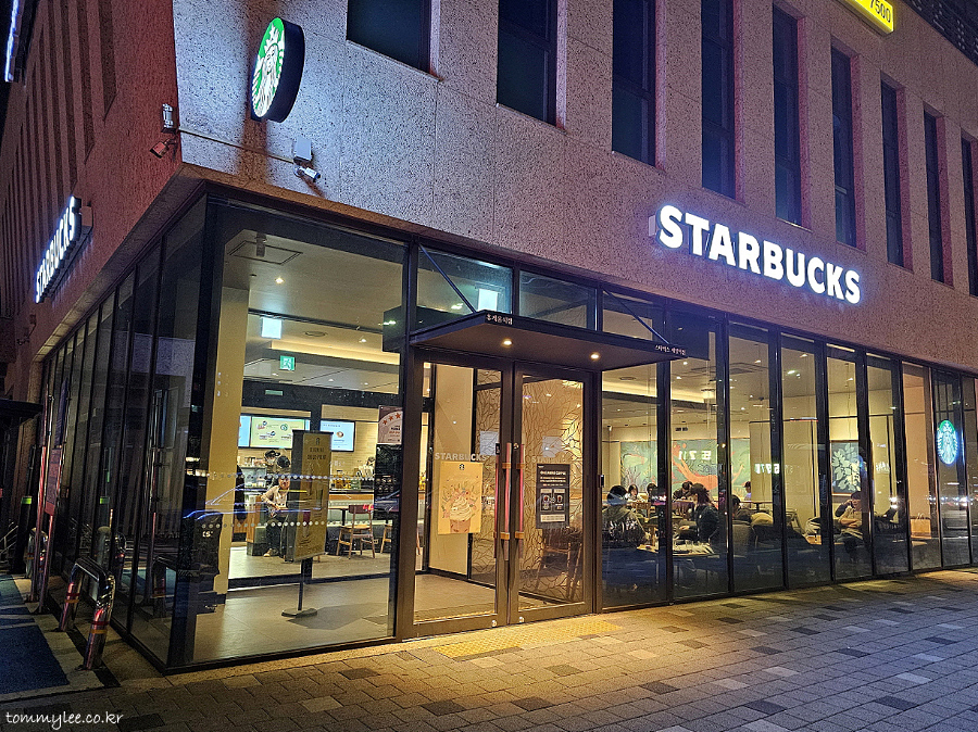 STARBUCKS.. SAEJEOL STATION.. 스타벅스 새절역점.. 영업시간 : 07:30~21:30, 주말 ~21:00..