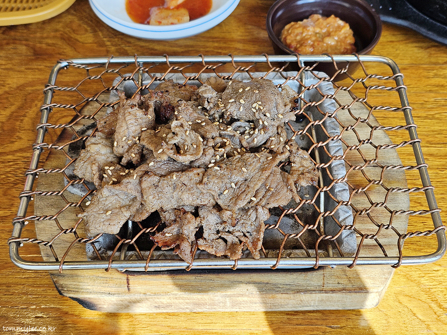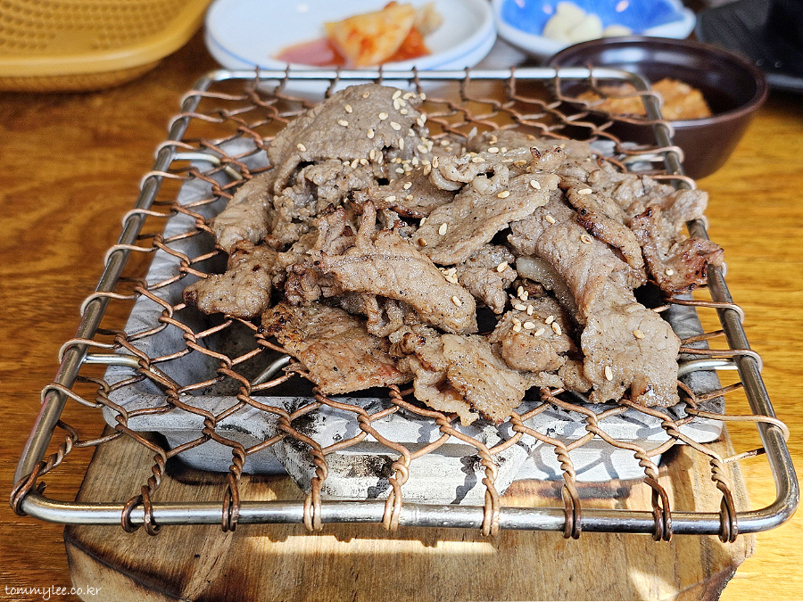숯불 석쇠에 수고스럽게 직접 구워야 해서.. 같은 가격의 제육에 비해 훨씬 손이 많이 갈 것 같습니다.. 조리과정은 까다롭지만 먹는 사람 입장에선 맛나고 좋은.. ㅋㅋㅋ.. 괜히 인기 메뉴가 아니었네요..