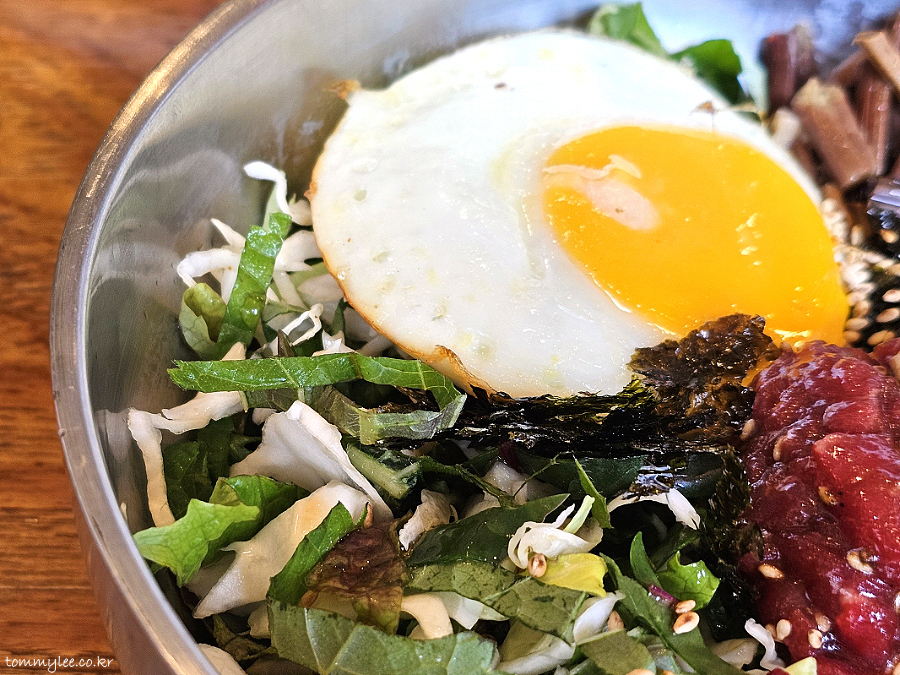 강경불고기 육회비빔밥의 특징이라면 밥이 따로 제공되고, 반숙 계란후라이가 나온다는 점.. 보통은 계란 노른자만 딱 올려 주는데 여기는 계란 하나를 온전히 섭취할 수 있어 좋다는 지인분의 말씀..