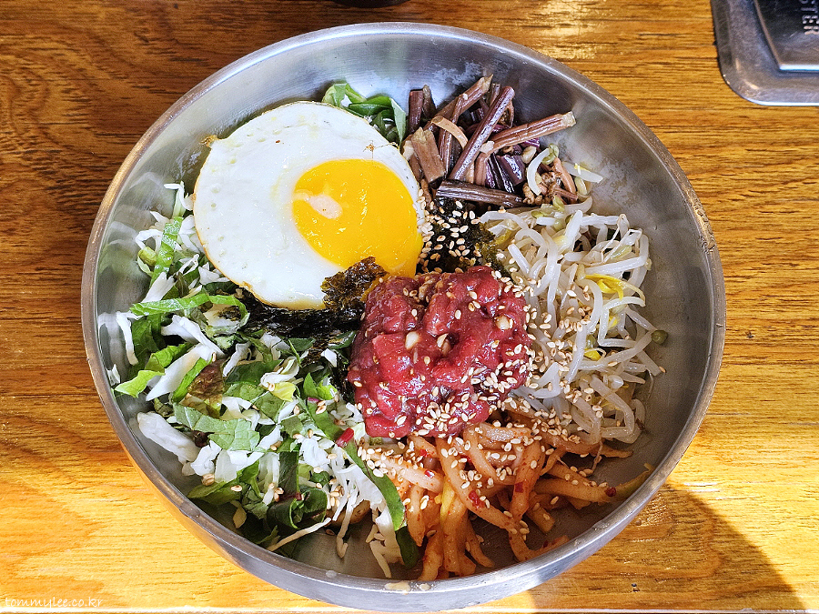 김치찌개와 같이 먹을 수 있는 이 한우 육회 비빔밥이 단돈 만원이라는 사실.. 너무 저렴하지 않나요??..