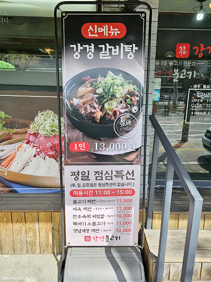신메뉴 강경갈비탕이 출시되었다고 하고요.. 평일 점심특선 이용시간은 11:00~15:00이라고 합니다.. 주말 및 공휴일은 점심특선이 없다고 하고요..