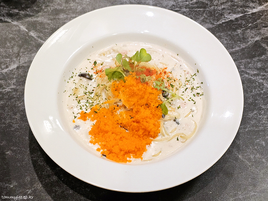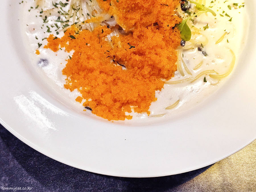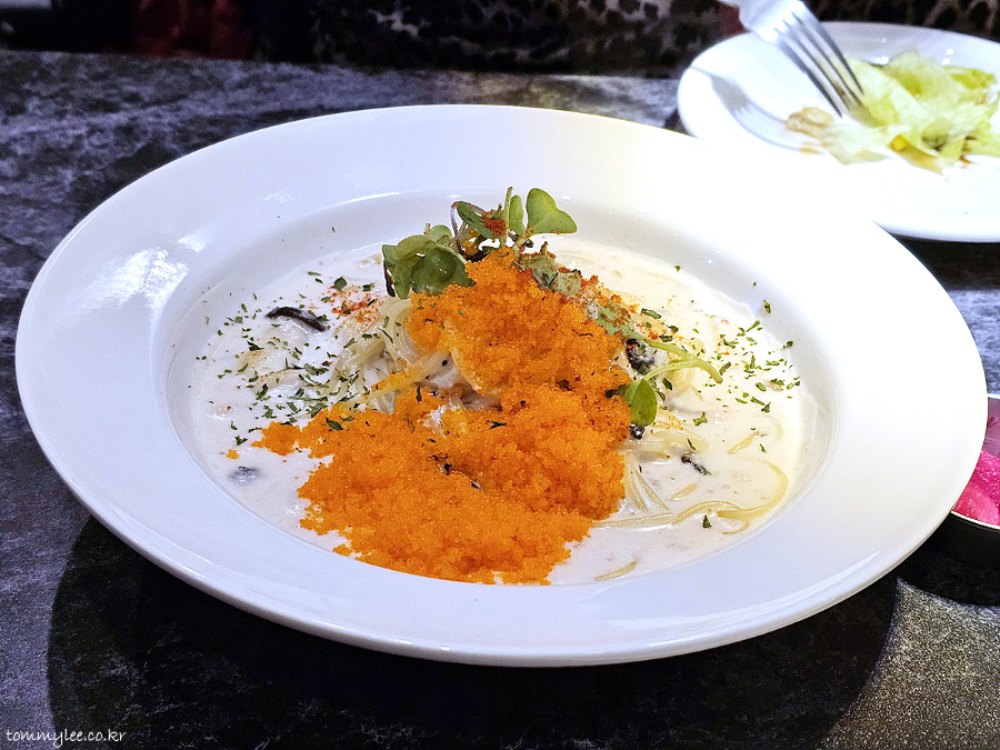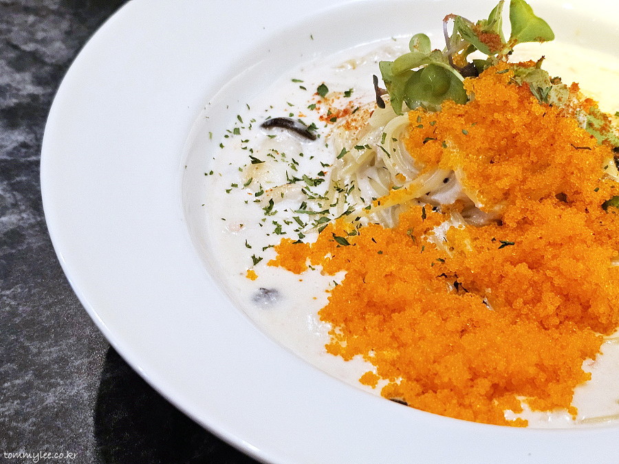 요즘 이렇게 날치알을 잔뜩 올려주는 크림 스파게티 하는 곳이 아예 없거든요.. 진짜 이건 일본에 가도 없음.. 얼마만에 먹어보는 건지.. ㅠ.ㅠ..