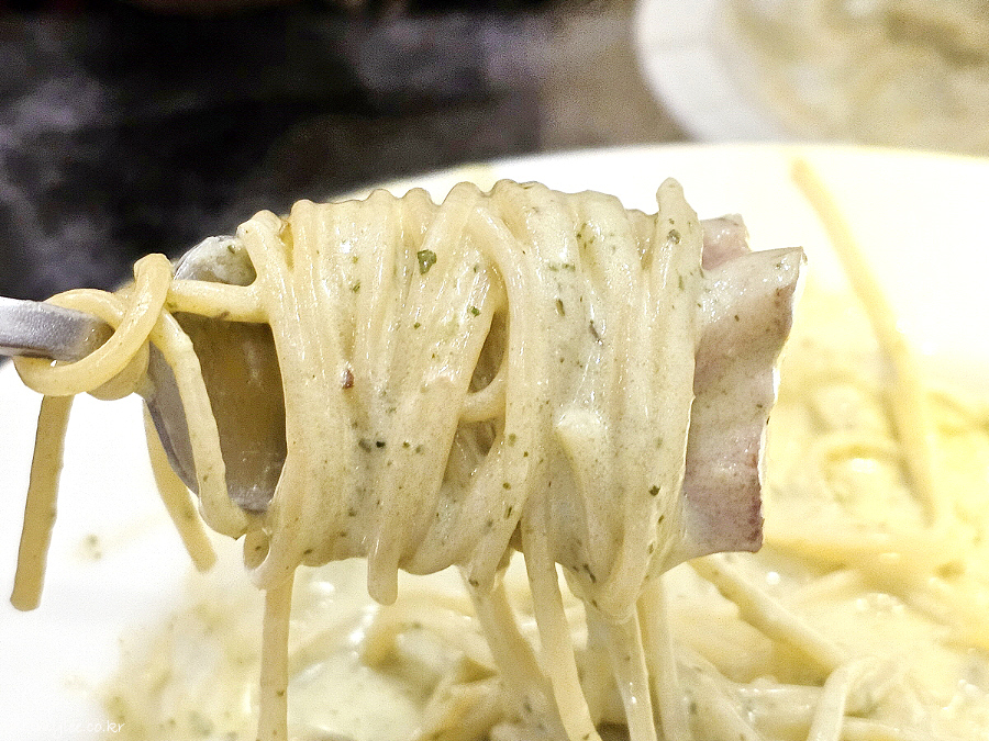 이렇게 바다와도 같은 넉넉한 크림소스를 보는 게 얼마만인지.. 너무 오랜만이라 훈훈하기까지.. 요즘은 이런 파스타집이 거의 없거든요.. 예전엔 주류였지만..