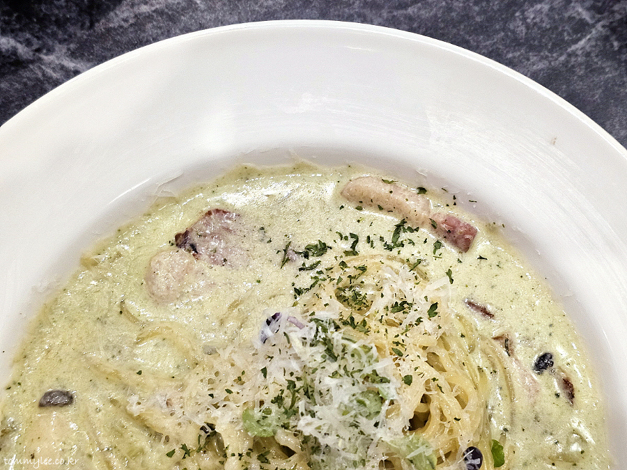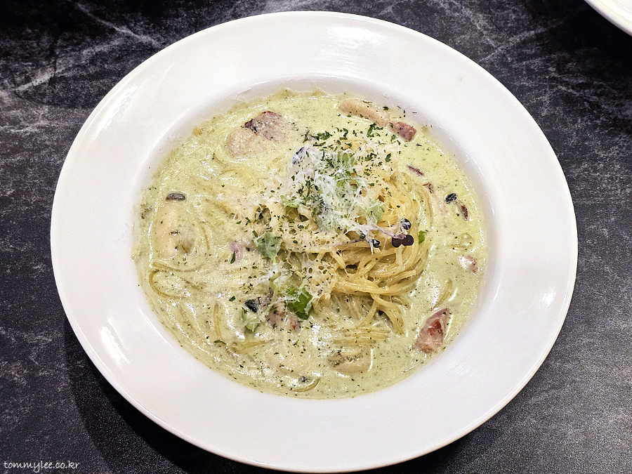 크림소스가 파스타볼에 넘실댈 정도로 소스 양이 많은 것이 이곳의 가장 큰 특징.. 뭐라고 해야 하려나, 복고풍의 파스타를 추구하는 것 같네요..