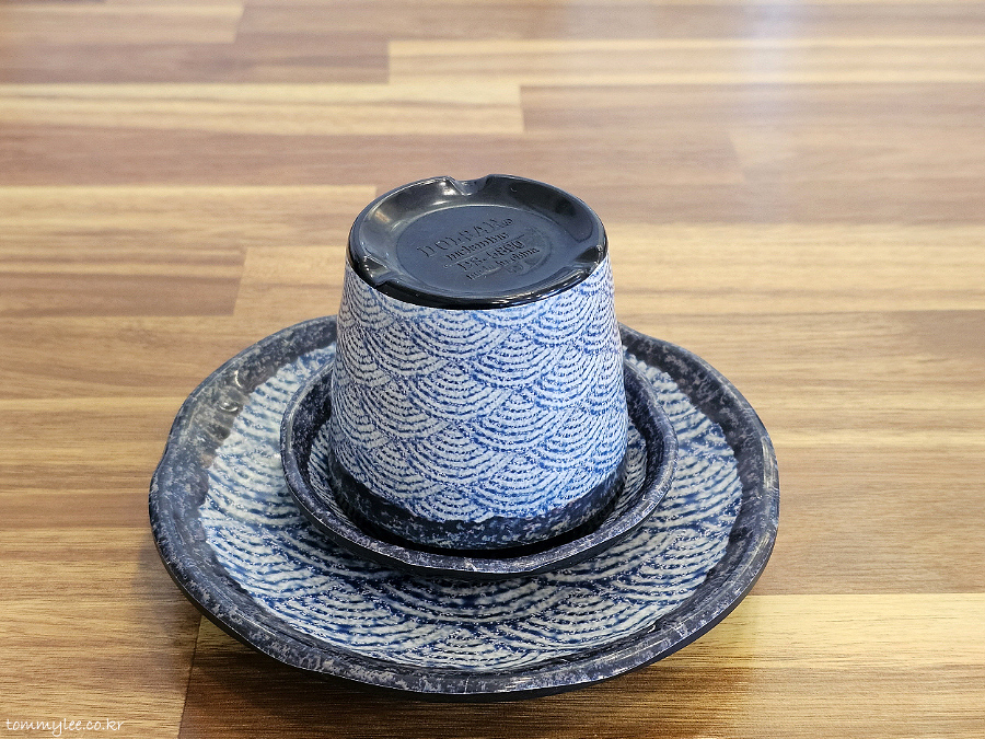 방문 전에 카카오맵으로 블로그 후기를 몇 개 보고 왔는데.. 전 이 식기가 도자기인 줄 알았는데 일본풍 파도무늬가 들어간 멜라민 식기더라고요.. 이게 좀 웃겼음.. ㅡㅡㅋ..