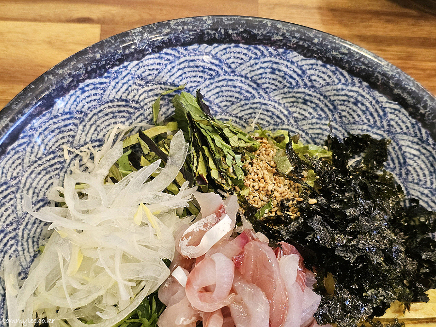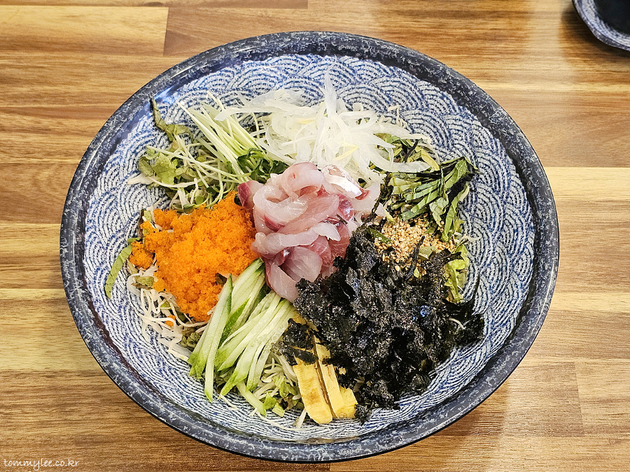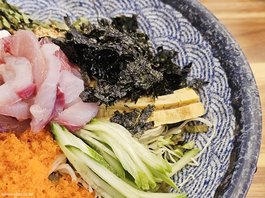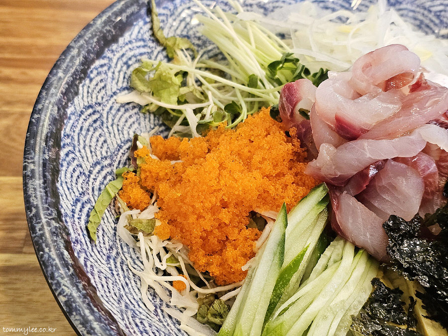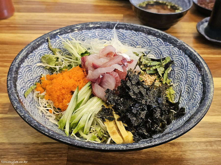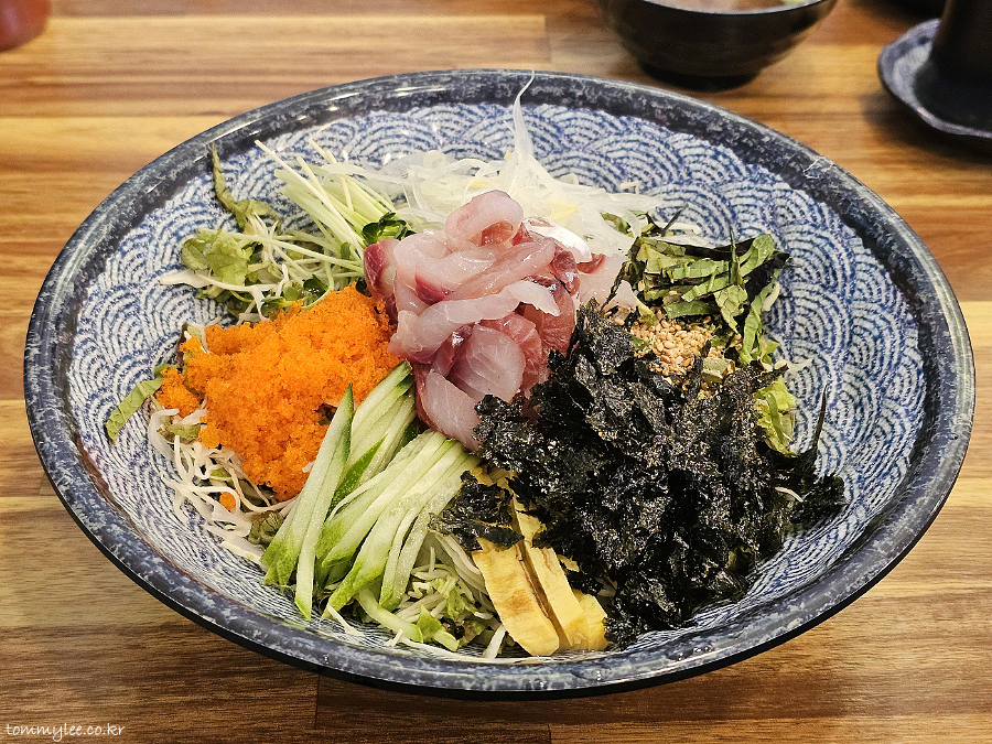 제가 보고 온 회덮밥 후기와는 회 종류가 전혀 달랐어요.. 여기 오마카세 회덮밥이네요.. 광어, 방어, 참치, 연어 등 노코리 사시미를 소재로 활용하는 회덮밥으로 보여집니다.. 사실 이런 오마카세 방식이 주인도 좋고 손님도 좋고 한거고.. 회덮밥의 원초적인 형태이기도 하겠죠..