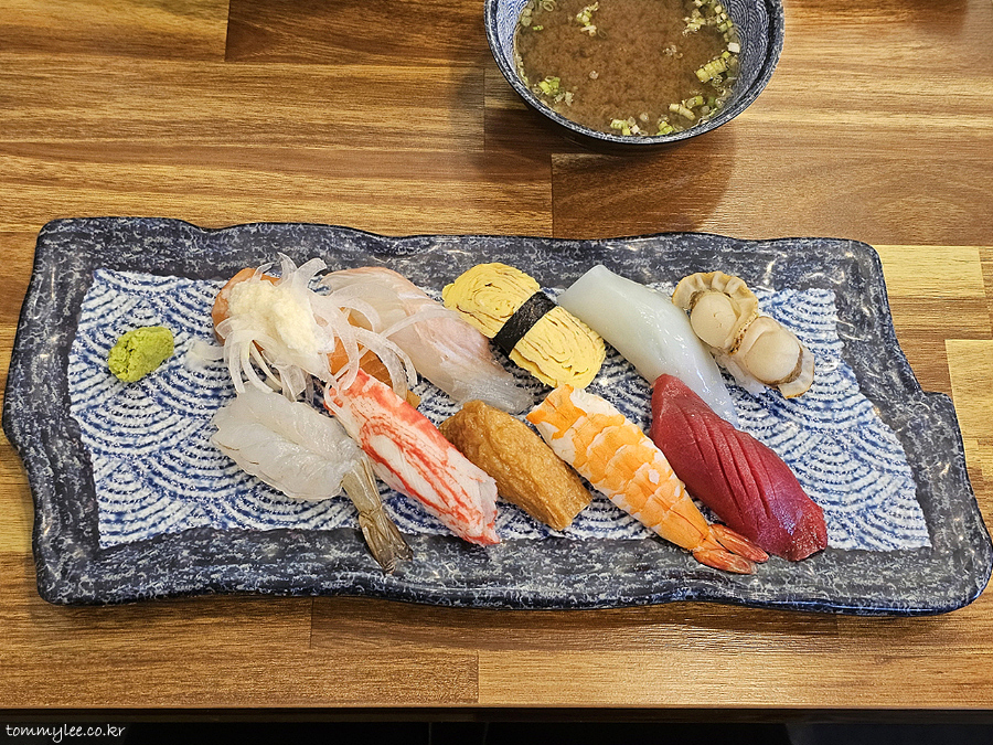 모듬초밥에는 따끈한 된장국이 함께 제공됩니다.. 미소시루 다시도 나름 신경 쓴 것 같다는 지인분의 말씀..