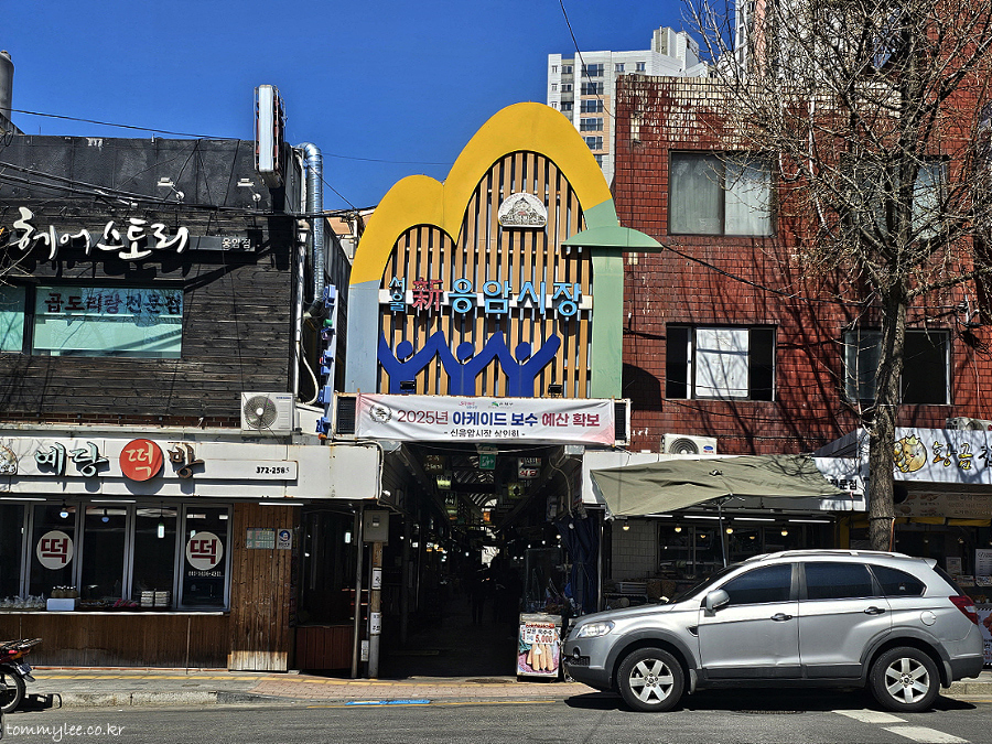 새절역 맛집, 응암시장 맛집이라고 하는데.. 새절역에서 많이 멀고, 응암역에서도 멉니다.. 두 역의 중간쯤임.. ㅡㅡㅋ.. 응암시장이랑도 딱히 관련은 없어요.. 응암시장 내에 오픈한 게 아니라 응암시장사거리 인근 전 구.응암3동 동사무소 근처더라고요.. 2025년 아케이드 보수 예산을 확보했단 플랭카드가 걸려 있던 신응암시장의 모습..