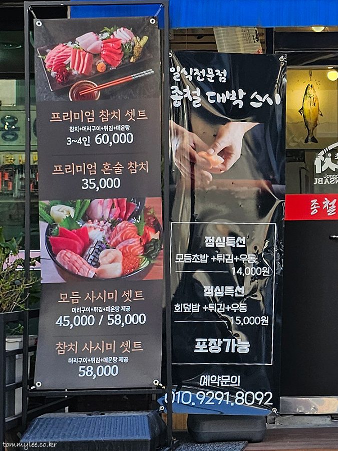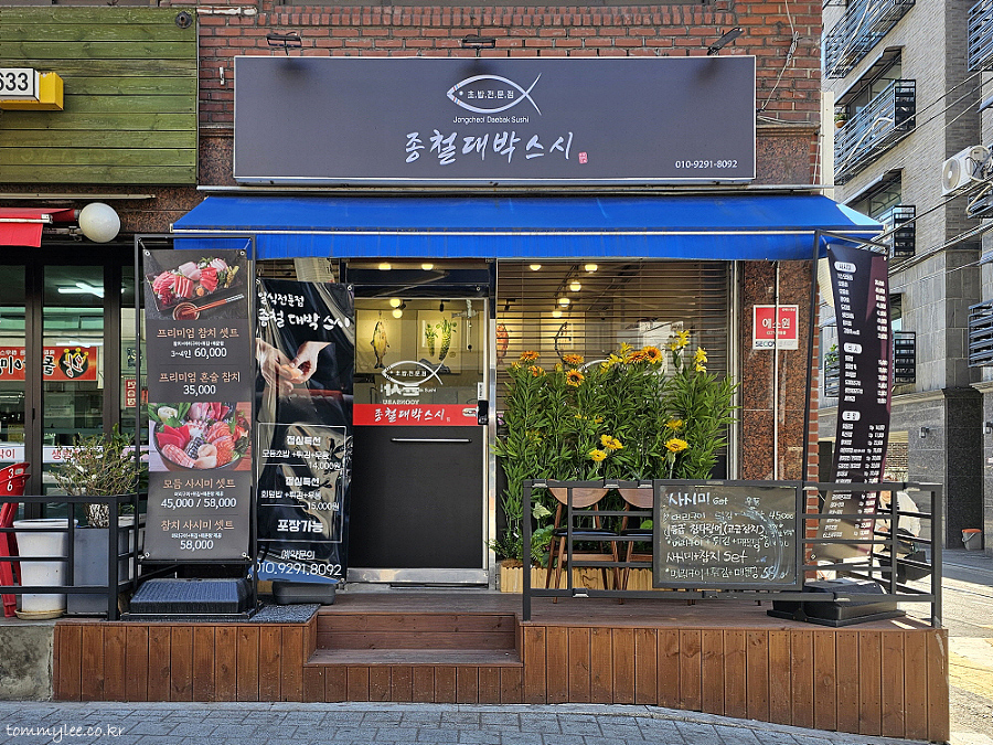 JONGCHEOL DAEBAK SUSHI.. 종철 대박 스시.. 영업시간 : 11:30~22:30, 일요휴무.. 주소 : 서울 은평구 응암로21길 5-1.. 예약문의 : 010-9391-8092..