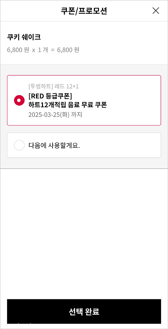 투썸 레드 등급쿠폰, 하트 12개적립 음료 무료쿠폰으로 뭘 마실까 고민하다가 신메뉴 중 쿠키 쉐이크로 투썸오더 했습니다.. 바닐라보다 쿠키가 더 비싸서.. ㅋㅋㅋ..