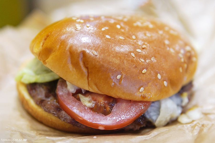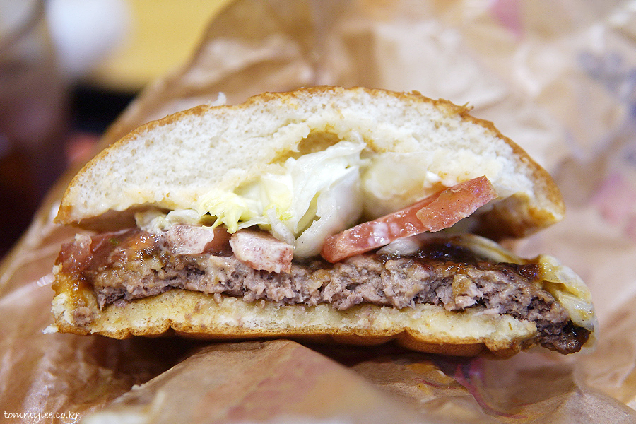 불고기와퍼 커팅샷.. 패티가 바로 구워낸 느낌이라 맛있었고요.. 오이피클이 한쪽으로 쏠려서 이건 살짝 아쉬웠던..