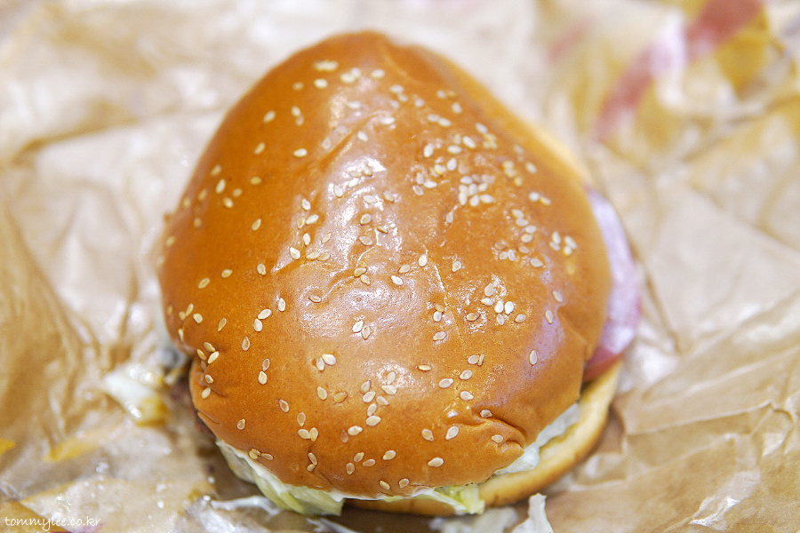 같은 값이면 그냥 와퍼보다는 불고기 소스가 들어간 불고기 와퍼가 이득이라고 생각해서 불고기 와퍼로 주문.. 위에서 바라보면 이런 느낌..