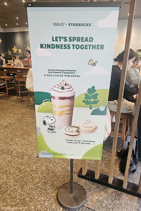PEANUTS + STARBUCKS.. LET'S SPREAD KINDNESS TOGETHER.. 지금 스타벅스에선 조카인드 스누피 초코카라멜 프라푸치노 프로모션 중.. 하지만 저는 디카페인 커피를 마셔야 했네요..