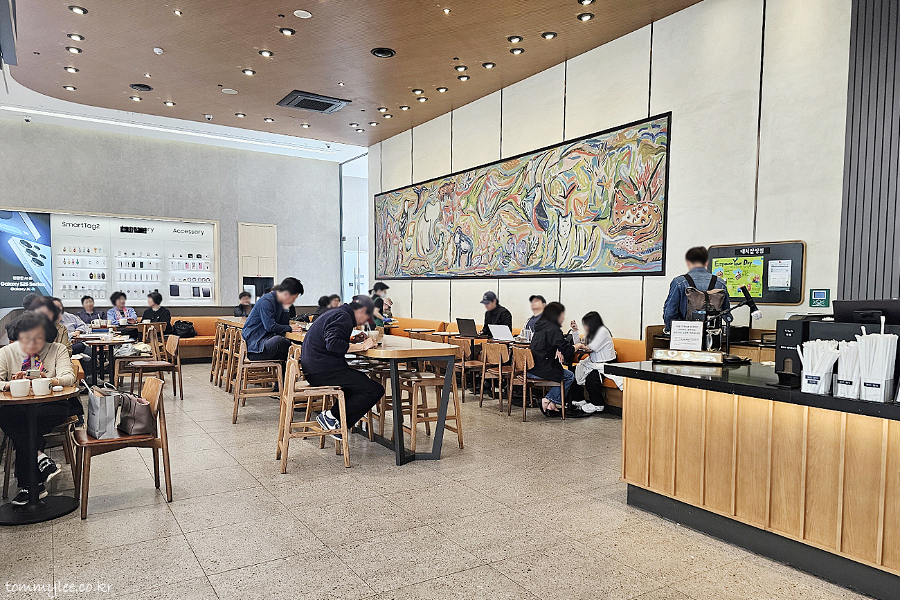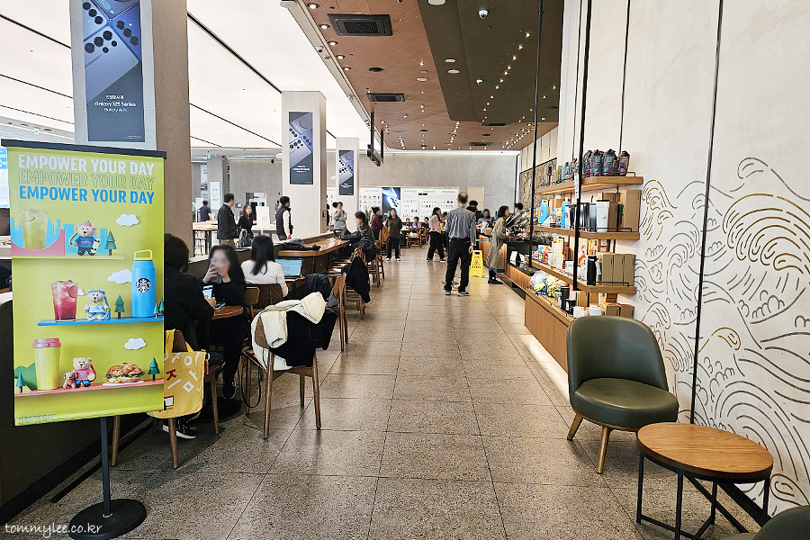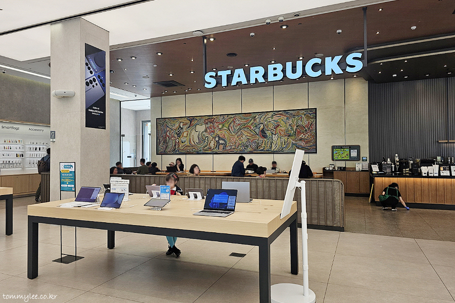 스타벅스 대치삼성점은 삼성스토어 대치점 내에 자리하고 있습니다.. 삼성스토어 홍대점에 포비 카페 있는 거 비스꾸리한가도 싶었는데.. 규모가 훨씬 크더라는.. 좌석수가 비교가 안 되는 수준..
