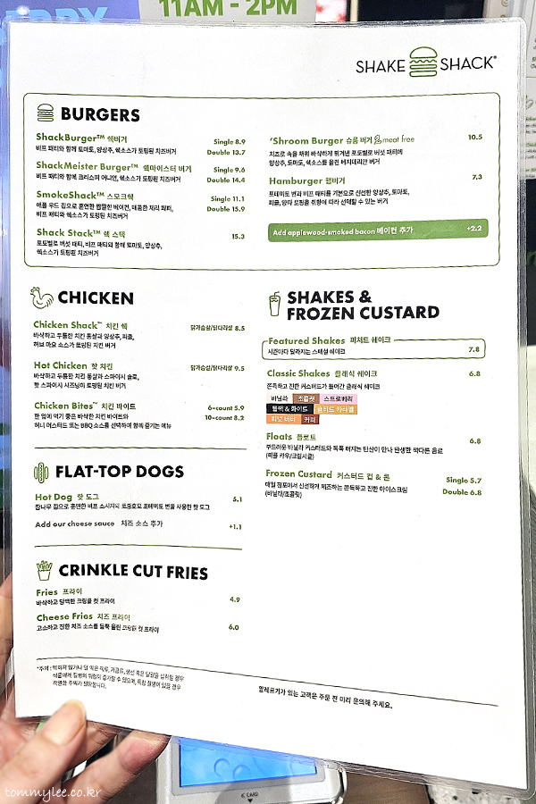 SHAKE SHACK.. HONGDAE.. 쉐이크쉑 홍대점.. 영업시간 : 10:30~22:30, 주말 ~23:00..