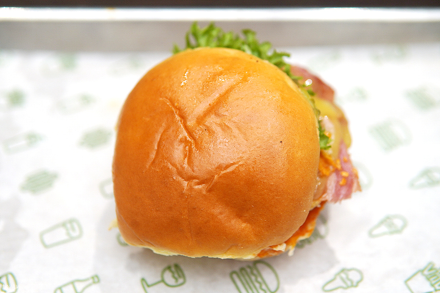 쉐이크쉑 라임칠리탉 구성은.. 포테이토번-허브마요-오이피클-나초칩-화이트체다치즈-리임칠리소스-닭가슴살패티-번의 순서..