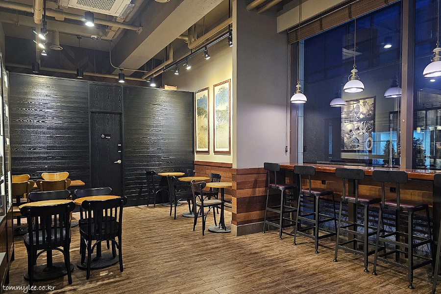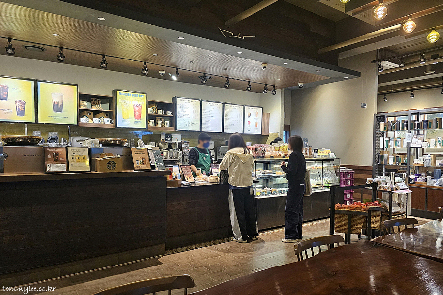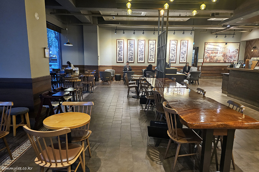 사이렌오더 후 방문했습니다.. 스타벅스 방배점 매장 안으로 들어서면 이런 느낌.. 매장 영업종료 시간이 가까워진지라 손님이 많이 없었어요..