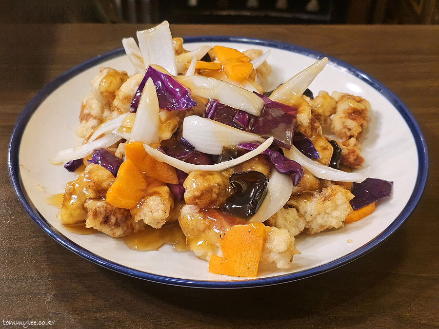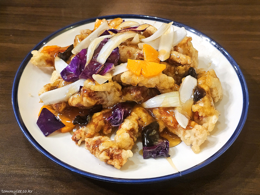 오늘의 일품요리는 탕수육.. 위에서 바라보면 이런 느낌입니다.. 클래식한 광둥식 탕수육을 추구하고 있고요..