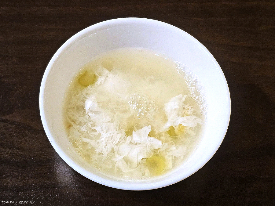 잡채밥에도 계란국 제공됩니다.. 흰자로만 깔끔하게 끓여 냈어요..
