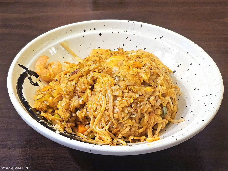 보시다시피 게살과 새우가 들어간 황금스타일의 볶음밥이고요.. 불맛과 감칠맛이 있는 게 특징입니다..