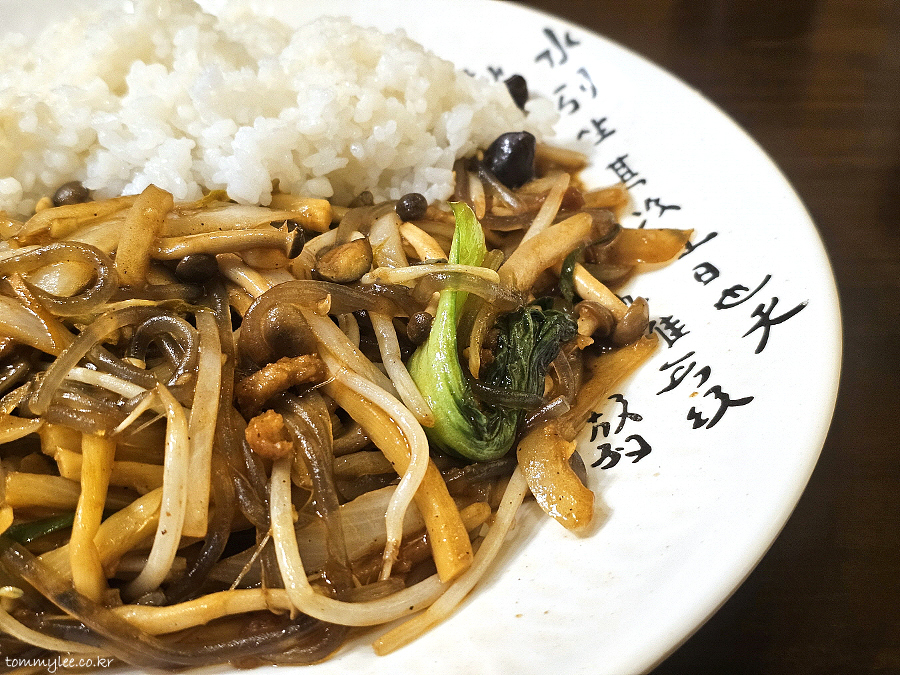 서울에서 만원 언더의 가격에 이 정도의 잡채밥은 만라보기 힘들다는 지인분.. 보통 저렴이 잡채밥의 경우 당면 위주인데 여기는 당면이 많지가 않고 소재가 버라이어티 하다죠..