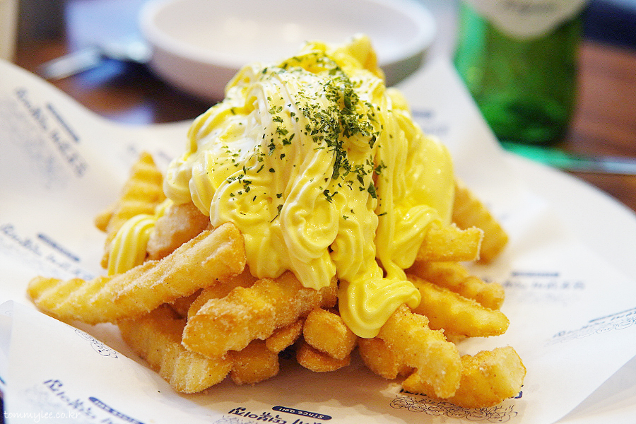 기름 풍덩 감자튀김에 충실한 기본 시즈닝과 엄청난 양의 버터갈릭 마요네즈까지.. 진짜 이건 살찌는 음식.. ㅋㅋㅋ..