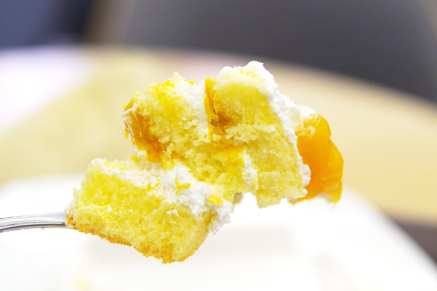케이크 시트가 두툼한데 부드러워서 힘이 좀 없어요.. 망고퓨레가 접착제 역할을 못해주기도 해서.. 예쁘게 먹긴 사실상 불가능.. ㅡㅡㅋ..