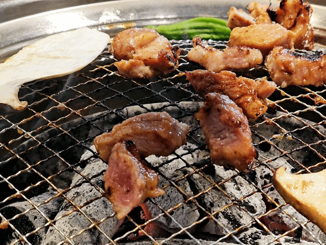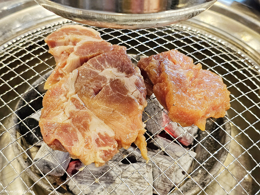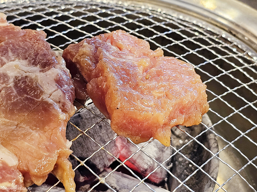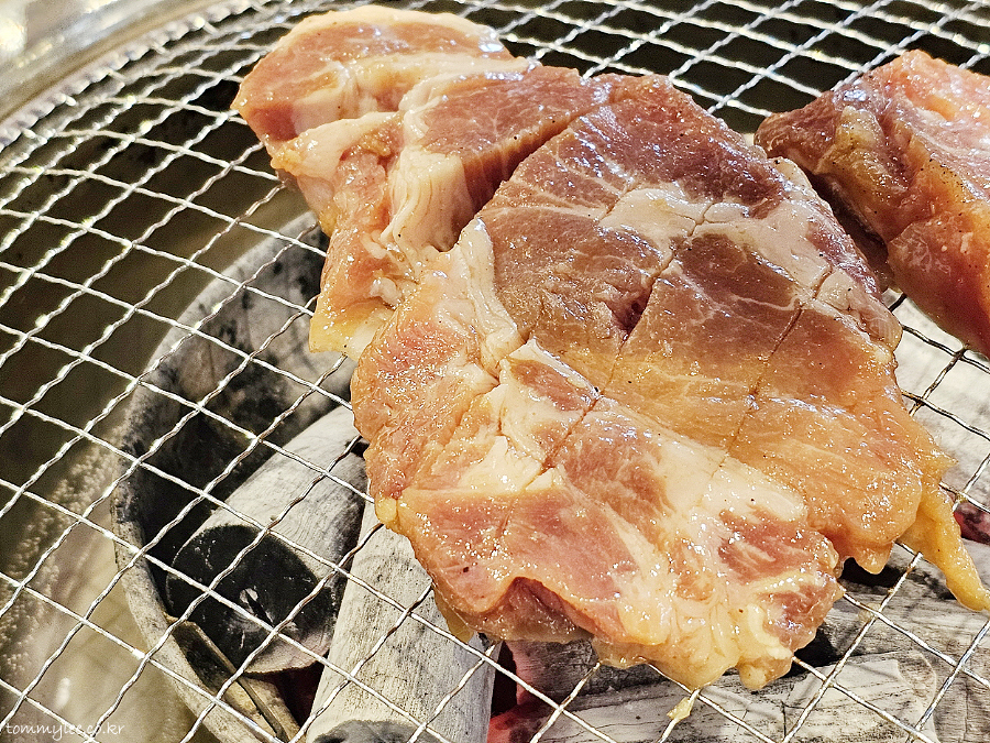 숯불이 준비가 되었다고 합니다.. 불판에 고기를 올려 봅니다..