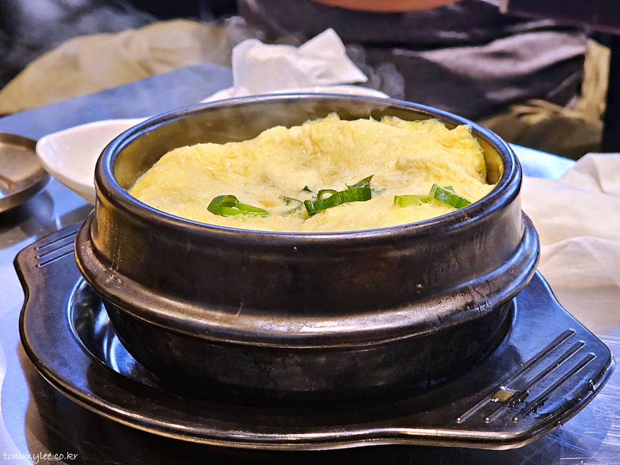 계란찜 도착입니다.. 뚝배기 계란찜이었고요.. 엄청 요란스러운 소리와 함께 화려하게 제공된 계란찜..