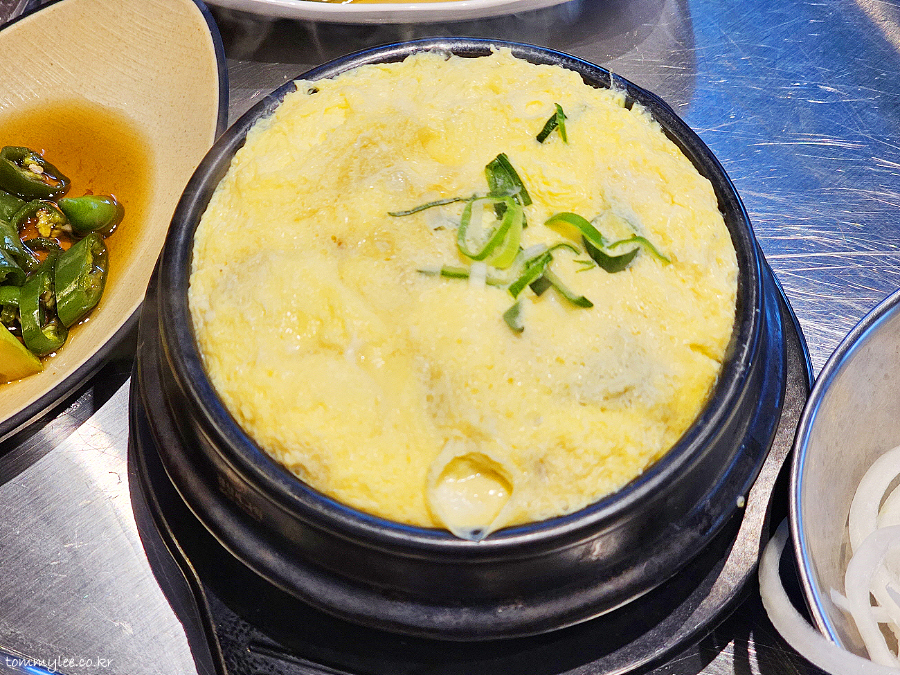 고기가 다 익어갈 때즈음 해서 된장찌개가 준비가 힘들 것 같다고 하시네요.. 어쩌라는 건가 했는데.. 된장찌개 대신에 계란찜을 하나 더 드리면 어떻겠냐는 제안을 해주셨습니다.. 선택권은 없었지만.. 암튼 그러시라고 함..