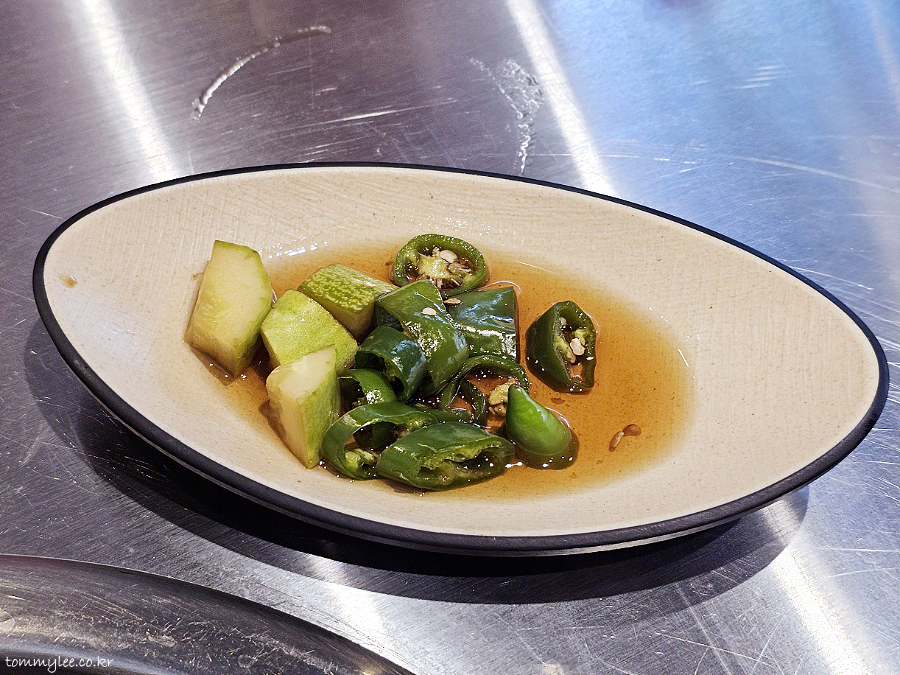 배추김치.. 반찬 5종이라면서 왜 4가지죠??.. 생양파도 반찬으로 쳐야 하는 건가.. 오이절임과 고추절임을 따로 해서 2종으로 봐야 하는 건가는 의문.. ㅡㅡa..