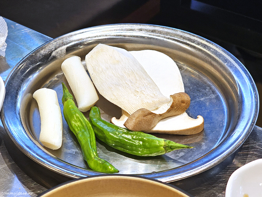새송이버섯, 떡, 고추가 나왔는데.. 다 2개씩 줌.. 3인분인데??.. 한명은 못 먹는 거예요..