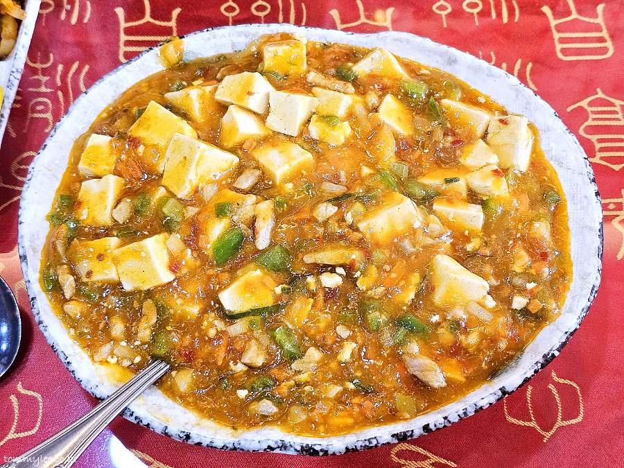 색만 봐도 마일드한 느낌의 마파두부인데요.. 보이는 그대로 별로 안 맵고 구수한 느낌의 마파두부랍니다..