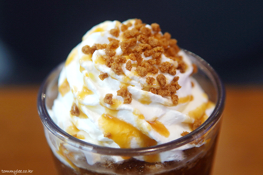 얼음이 갈리다 말은 느낌이라 전체적으론 별로였으나.. 얼음과 관계없는 카라멜 드리즐 올라긴 휘핑크림이랑 쿠키 크럼블은 맛있었다는 거..