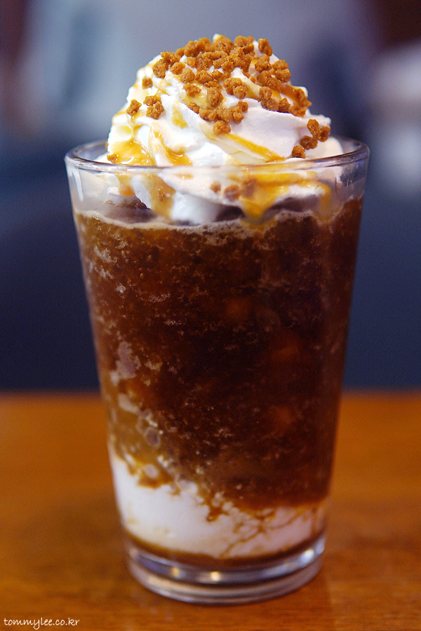 블렌더 상태가 안좋은지 얼음이 갈리다 말아서 퀄리티는 안 좋았어요.. 얼음이 굵직했던 덕분에 커피 슬러쉬 느낌??.. ㅋㅋㅋ..