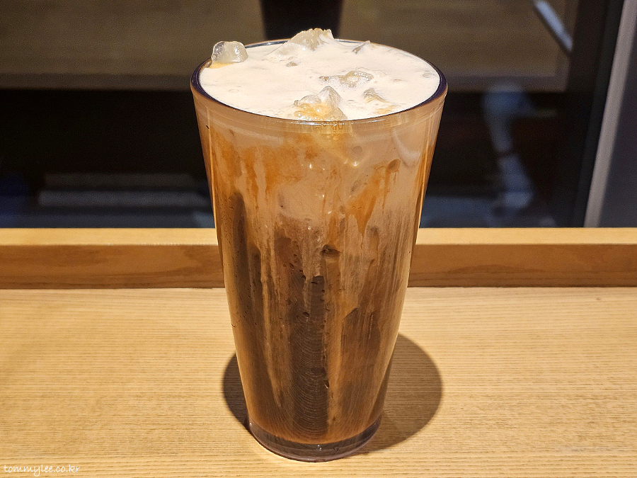 다른 콜드브루와는 달리 빨대 대신에 입을 대고 마셔야 하는 커피이고요.. 씨솔트 크림폼을 부드럽게 흡입해줘야 하는데 얼음이 많아서 아주 많이 거슬리네요.. 씨솔트 폼에 카라멜 드리즐 조합이 단짠단짠 하니 맛나긴 함..