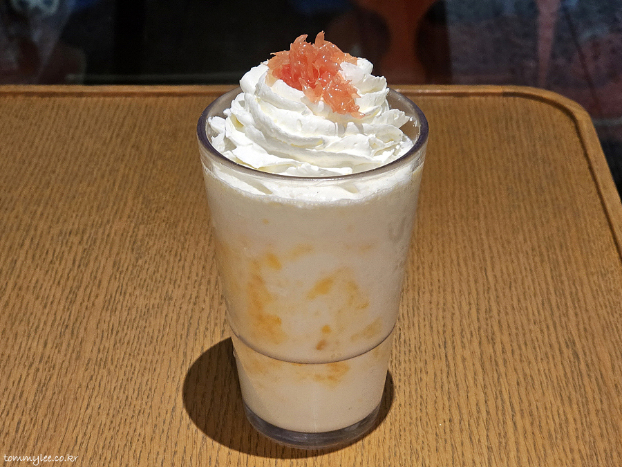 GRAPEFRUIT MANGO COCO FRAPPUCCINO.. 자몽 망고 코코 프라푸치노.. 그란데 7,900원..