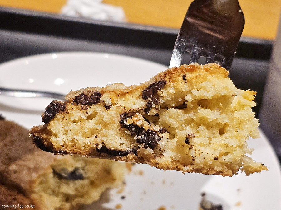 안쪽 초코칩이 스콘 생지에 착실하게 녹아 들어가 더 맛있게 느껴지네요.. 따뜻하게 데움 옵션은 필수인 듯싶습니다..