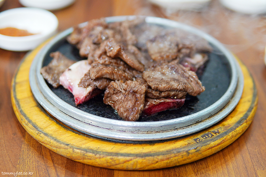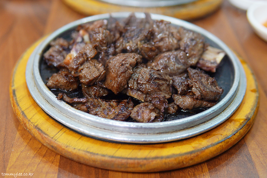 강한 숯불에 빠르게 구워내서 육즙이 달아날 틈이 없습니다.. 한우갈비가 맛있긴 하다는 지인분들의 평가..