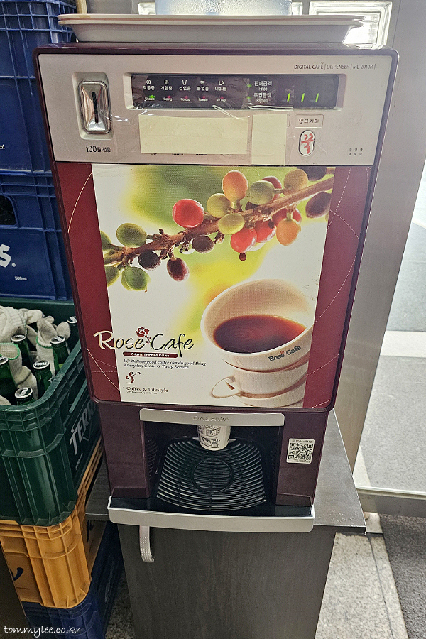 소복갈비 건너편에 소복카페가 있지만 저희는 캐셔 앞의 로즈카페 커피머신 이용.. 밀크커피 꾹 이라고 써있는 버튼을 누르시면 된다는..