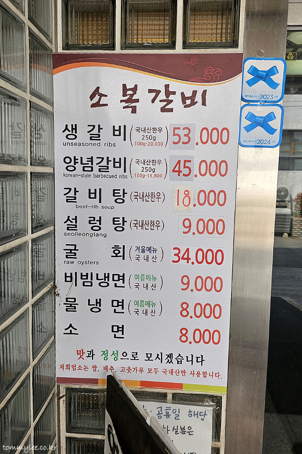 올해도 가격인상이 살짝 있네요.. 생갈비 52,000원→53,000원, 양념갈비 44,000원→45,000원, 갈비탕 17,000원→18,000원으로 천원씩 올랐습니다..
