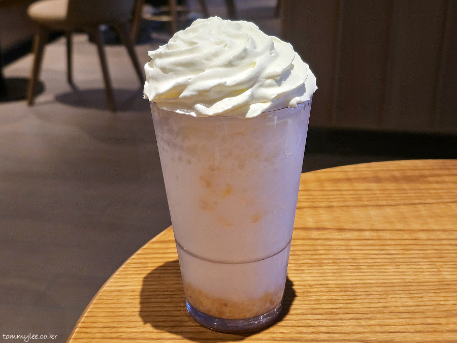 자몽 토핑이 휘핑크림 아래에 깔려 있어서 많이 안타까운 기분이긴 했는데.. 맛은 뭐 나쁘지 않았다는 지인분의 평가..