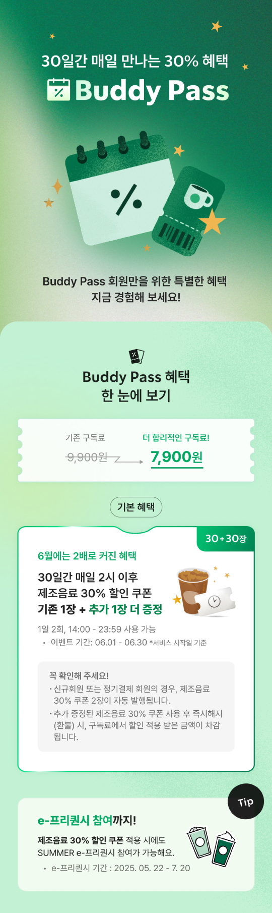 6월에는 2배로 커진 혜택.. 제조음료 30% 할인쿠폰을 추가로 1장 더 줍니다.. 매일 2장씩 주는 거예요.. 이브닝 이벤트랑 중복의 기분이어서 주는 거 같긴 한데.. 2장 주니까 자연스럽게 지인분들을 스타벅스로 유도(--)하게 되는 효과는 확실히 있는 것 같아요..