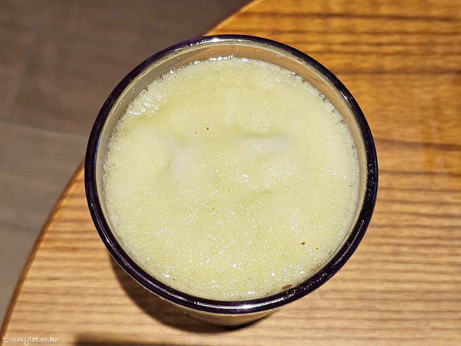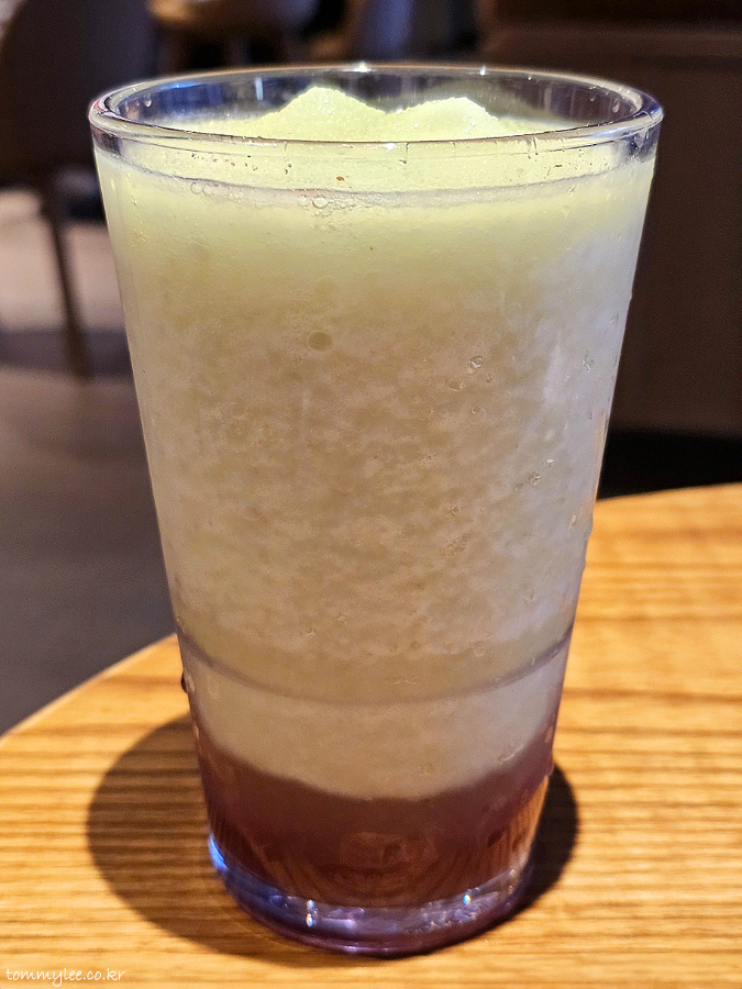 저번에 우유 들어간 프라푸치노 마셨더니 배가 꾸룩꾸룩했다고 하셔서 유제품이 들어가지 않은 과일계 블렌디드인 더블 머스캣 블렌디드를 추천해 드렸네요..