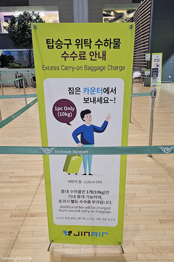 진에어 기내 휴대 수하물은 10Kg 1개, 세변의 합이 115cm 이하라는 거..