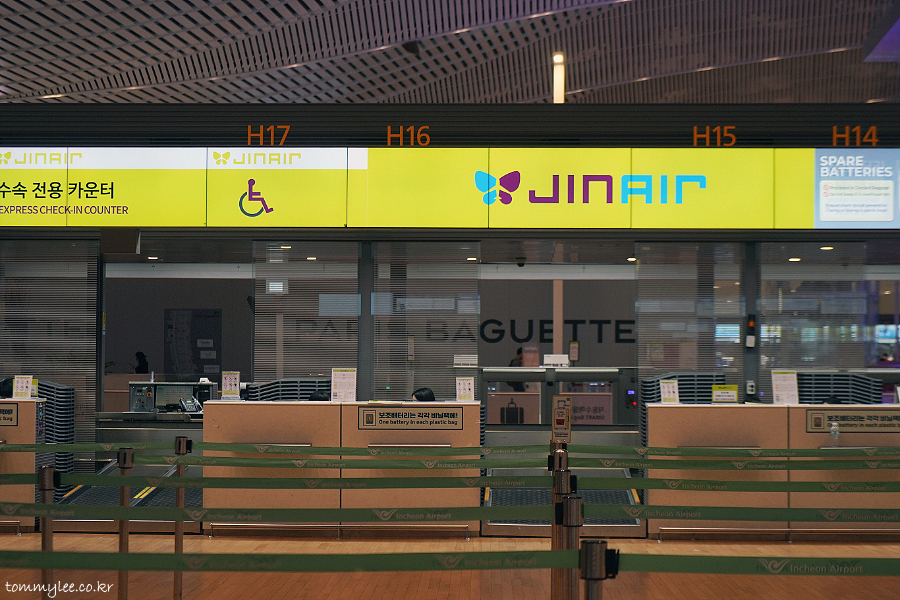 1시간반 지연으로 혼자서 공항에서 시간을 많이 때워야 하는 상황이 되었는데요.. 어쨌거나 일단은 짐을 먼저 보내야 했답니다.. 진에어 체크인 카운터는 H..